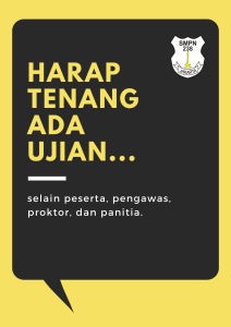 Harap tenang, ada ujian. Ujian Sekolah jenjang SMP dilaksanakan serentak pada tanggal 28 Maret – 1 April 2022. Begitu juga dengan SMP Negeri 238 Jakarta.