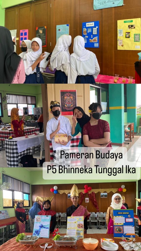 Rabu, 8 Februari 2023 peserta didik mempelajari materi Pengenalan Daerah, Materi Makanan, dan Materi Permainan sesuai tema kelasnya masing-masing. Daerah Istimewa Yogyakarta (DIY) merupakan tema daerah yang didapat oleh kelas 7A, kemudian kelas 7B mendapatkan tema Sumatera Barat, kelas 7C mendapatkan tema Sulawesi Utara, kelas 7D mendapatkan tema Nusa Tenggara Timur (NTT), kelas 7E mendapatkan tema Jawa Barat, dan kelas 7F yang mendapatkan tema yang berasal dari daerah Bali.